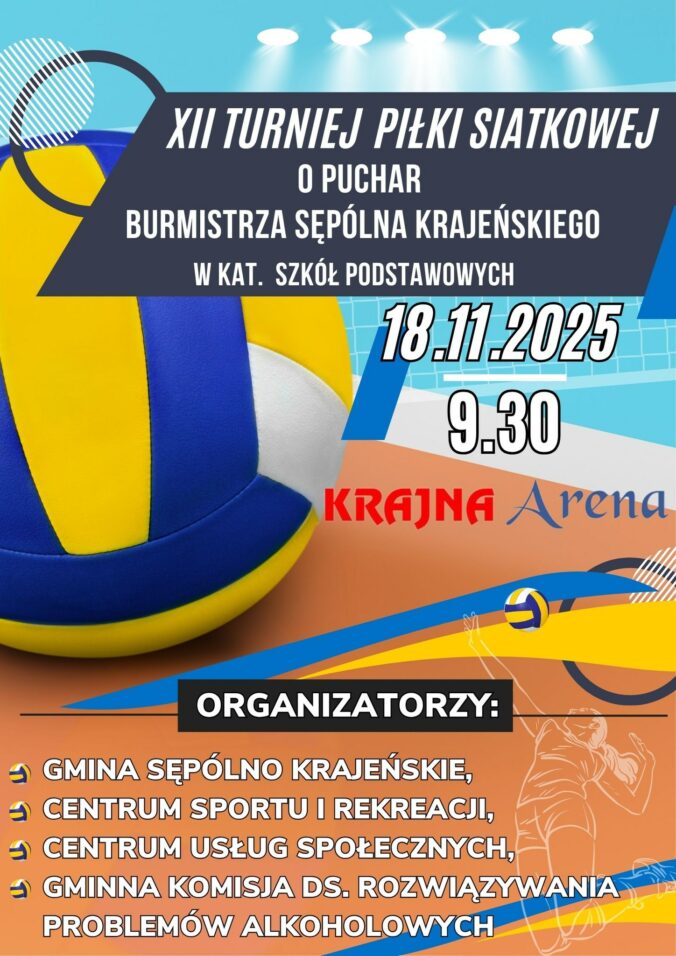 Już jutro o godz. 9.30 odbędzie się XII Turniej Piłki Siatkowej o Puchar Burmistrza Sępólna Krajeńskiego. Do rywalizacji przystąpi 6 zespołów dziewcząt i 8 chłopców z klas7-8 z naszej gminy. Zawody rozgrywane będą pod hasłem „Jestem szczęśliwy, bo wolny od uzależnień”. Zapraszamy do kibicowania!