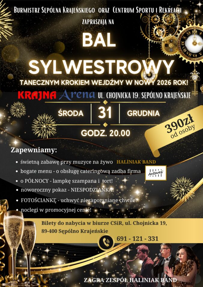 Po dłuższej przerwie, z radością informujemy, że Bal Sylwestrowy wraca do Krajna Arena!