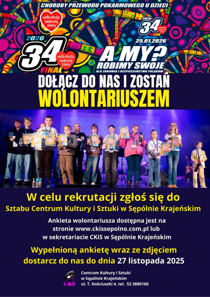 Po raz kolejny Sztab Centrum Kultury i Sztuki w Sępólnie Krajeńskim zaprasza do wspólnego grania z Wielką Orkiestrą Świątecznej Pomocy!