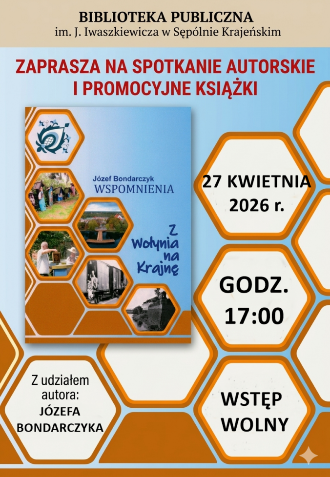 Biblioteka Publiczna im. J. Iwaszkiewicza w Sępólnie Krajeńskim serdecznie zaprasza na wieczór autorski poświęcony promocji książki pt. „Z Wołynia na Krajnę”. Gościem specjalnym wydarzenia będzie jej autor – Józef Bondarczyk. Czytaj dalej
