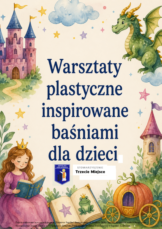 Stowarzyszenie Trzecie Miejsce zaprasza najmłodszych do wspólnej, twórczej przygody pełnej magii, wyobraźni i kolorów. Podczas zajęć dzieci wysłuchają fragmentów baśni, a następnie stworzą własne prace plastyczne – zamki, niezwykłe postacie i magiczne sceny.