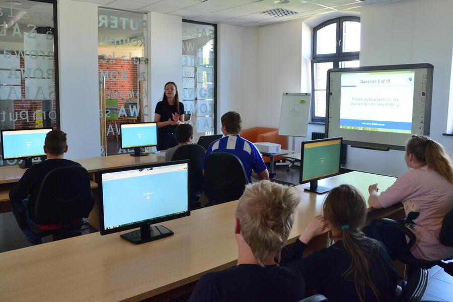 A jak zachować się, kiedy spotkamy ranne zwierzę, złapie nas burza, natkniemy się na dzikie wysypisko śmieci lub wrócimy z wycieczki do lasu z niebezpiecznym dla zdrowia kleszczem? Odpowiedź na te oraz wiele innych pytań poznali uczniowie, którzy po części teoretycznej mieli szansę sprawdzić zdobytą wiedzę poprzez rozwiązanie interaktywnego quizu. Uczestnicy zajęć wspaniale poradzili sobie z pytaniami oraz w trakcie zajęć chętnie dzielili się swoją wiedzą i doświadczeniami związanymi z wędrówkami po lesie. Zadanie finansowane jest ze środków Gminy Sępólno Krajeńskie.