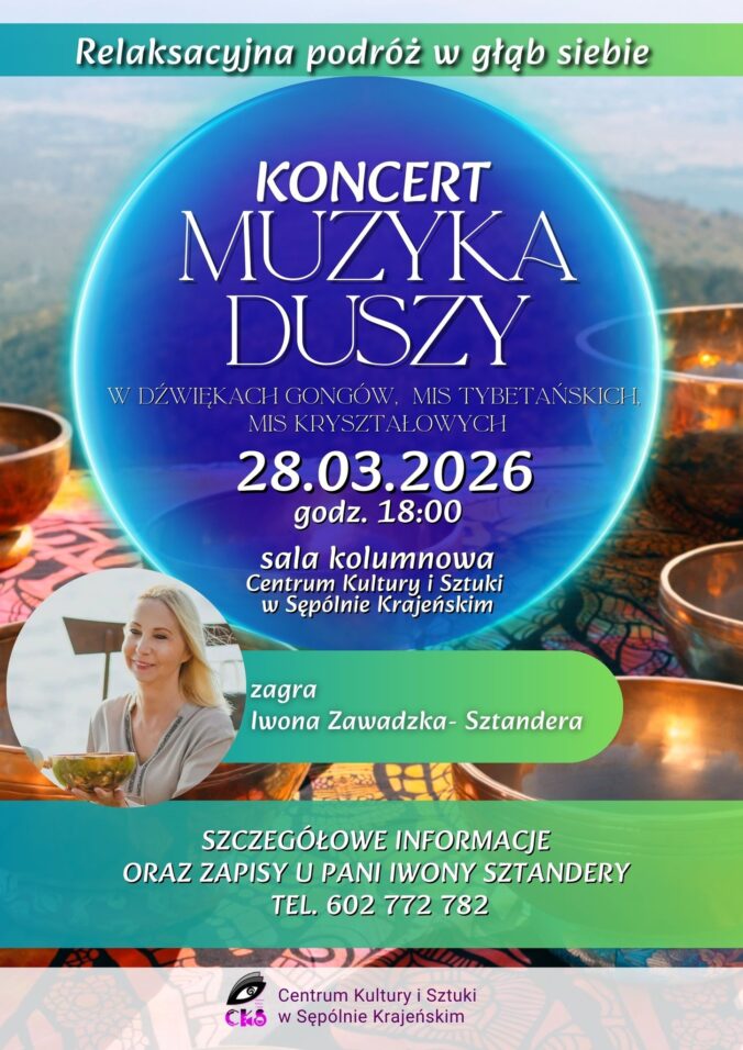 Serdecznie zapraszamy 28 marca o godz. 18:00 do Centrum Kultury i Sztuki w Sępólnie Krajeńskim wszystkich, którzy pragną doświadczyć magii dźwięku, przywrócenia wewnętrznej równowagi oraz odnalezienia głębokiego, wewnętrznego spokoju.