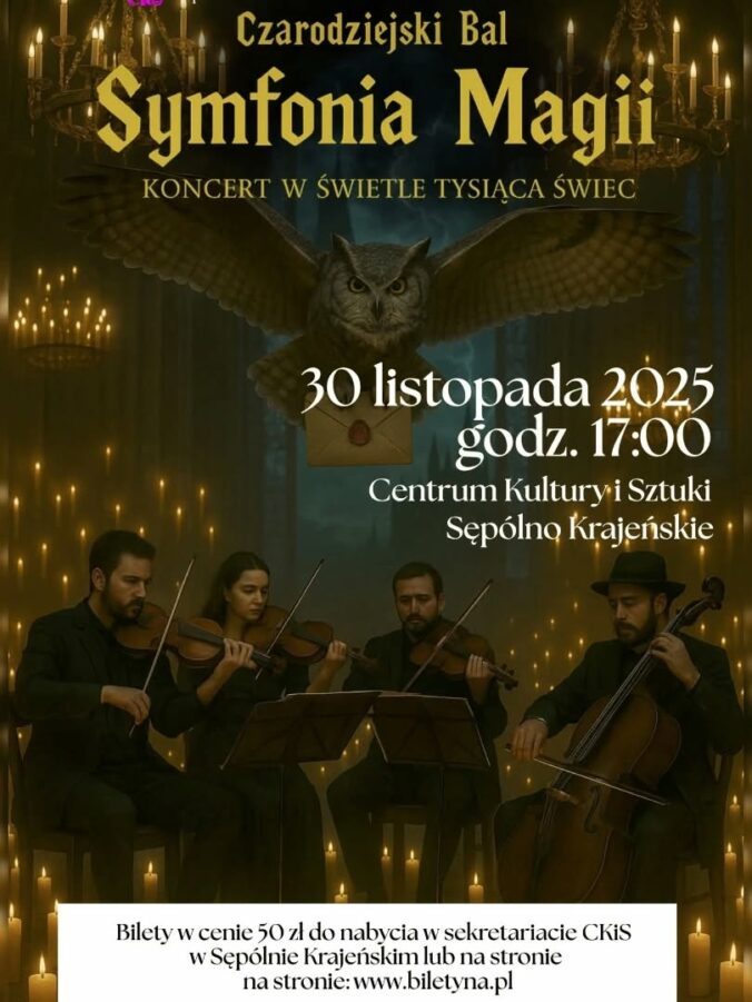 „Symfonia Magii” to niezwykłe wydarzenie muzyczne, inspirowane legendarną ścieżką dźwiękową znaną z filmowej sagi o młodych czarodziejach. Na scenie wystąpi kwartet smyczkowy, który wykona na żywo najpiękniejsze, najbardziej rozpoznawalne tematy – od subtelnych melodii towarzyszących sowom, listom i początkowi roku szkolnego, po monumentalne utwory z wielkich finałów. Każda nuta będzie jak powrót do Wielkiej Sali, do skrzypiących schodów, do poranków przy eliksirach i zaklęciach wypowiadanych szeptem.