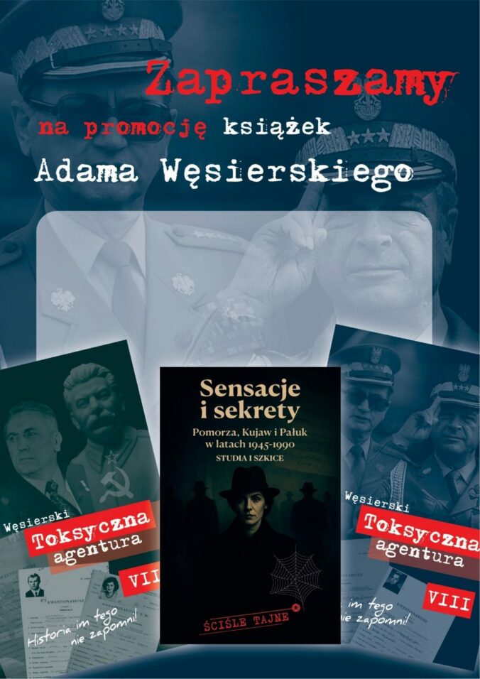6 października (poniedziałek) 2025 r. o godz. 17.00 zapraszamy do sępoleńskiej biblioteki na promocję książek dr. Adama Węsierskiego „Toksyczna agentura VII” i „Sensacje i sekrety Pomorza, Kujaw i Pałuk w latach 1945-1990. STUDIA I SZKICE”